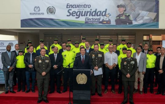 Durante el Encuentro para la Seguridad Electoral, el registrador nacional del Estado Civil, Hernán Penagos, y el director general de...