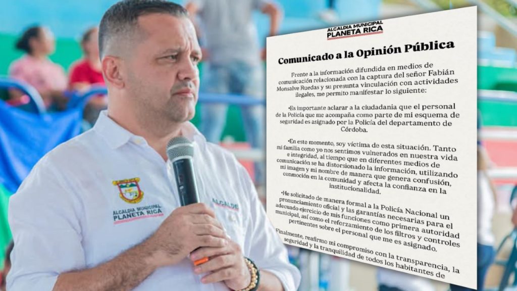 Alcalde de Planeta Rica se pronuncia tras captura de un miembro de su esquema de seguridad por presuntos vínculos con el Clan del Golfo.