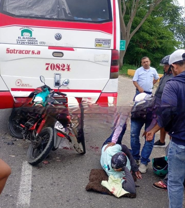 Un aparatoso siniestro de tránsito interrumpió la tranquilidad en la vía nacional que conecta a Montería con Cereté, dejando a un motociclista gravemente herido. El siniestro ocurrió a la altura del corregimiento de Mateo Gómez, donde un vehículo de dos ruedas colisionó violentamente contra la parte trasera de una buseta afiliada a la empresa Sotracor.
