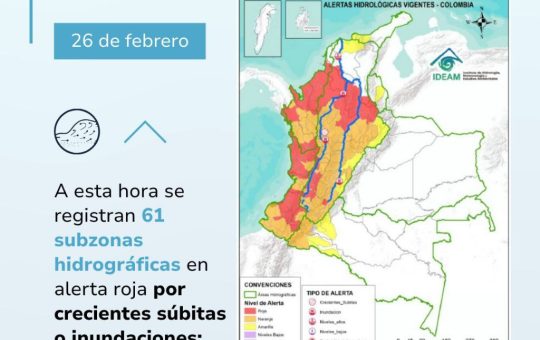 IDEAM presenta actualización de alertas hidrológicas en Colombia: 61 subzonas en alerta roja