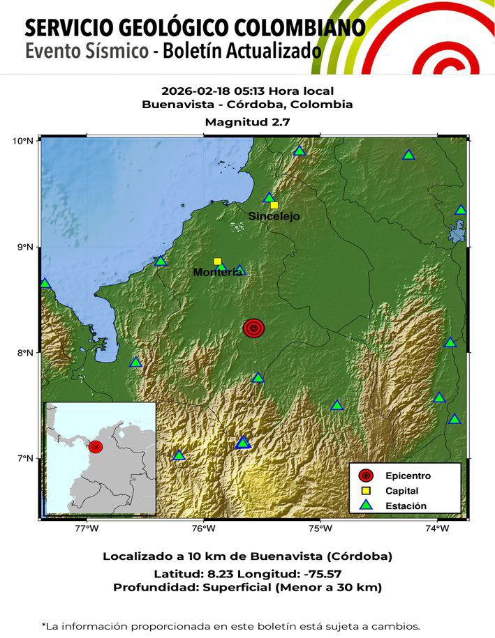 En atención al comunicado especial Nº22 del Instituto de Hidrología, Meteorología y Estudios Ambientales (IDEAM) y al boletín conjunto de IDEAM, DIMAR y UNGRD, la Gobernación de Córdoba a través de la Dirección Técnica y Ambiental de Riesgo informó a los municipios sobre la posible incidencia de un nuevo frente frío sobre el mar Caribe colombiano que podría generar un incremento de lluvias, en la intensidad de los vientos y en la altura del oleaje entre el 22 y el 25 de febrero, especialmente en el departamento de Córdoba.