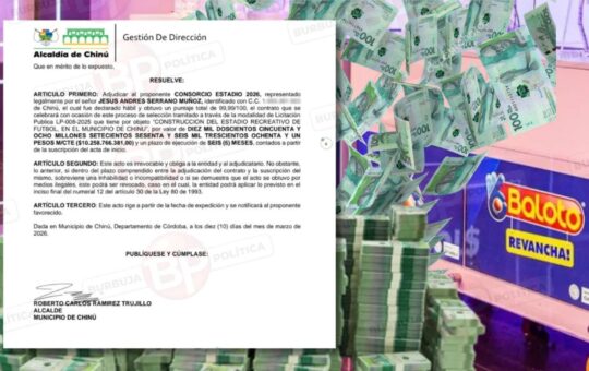 En Chinú “cayó el Baloto” adjudican contrato por más de 10 mil millones de pesos para construcción de un estadio.