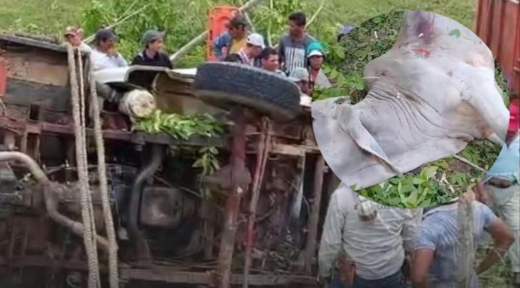 Comunidad rescata a conductor atrapado tras volcamiento de camión cargado de ganado en San Pelayo