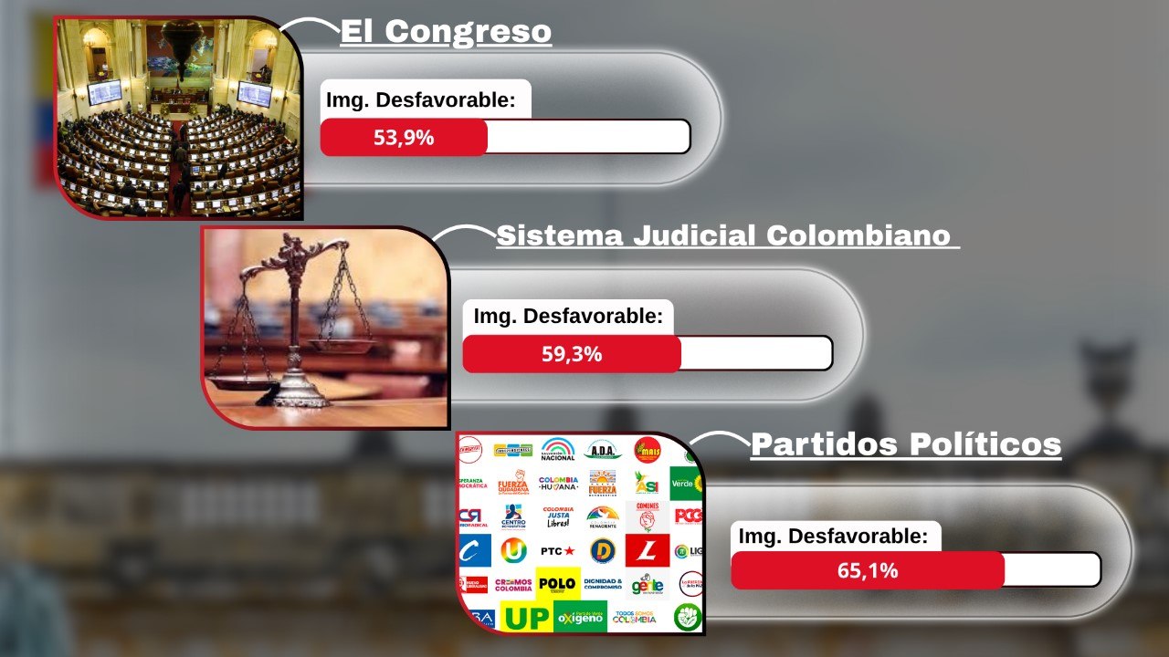 El Sistema Judicial colombiano también resultó mal calificado con una imagen favorable del 31,4% y desfavorable del 59,3%.