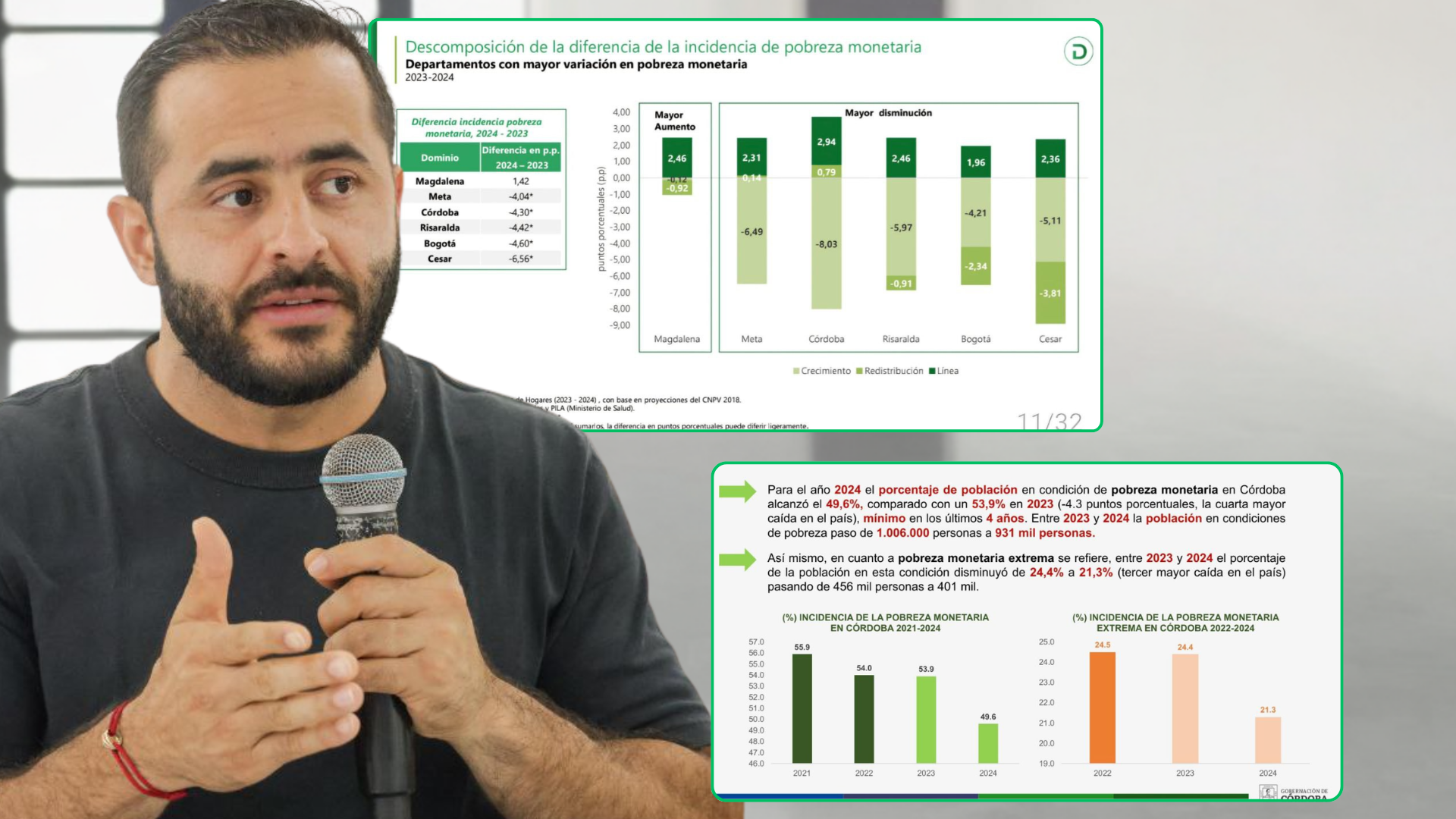 El gobernador enfatizó que el reto ahora es superar los promedios nacionales de pobreza y pobreza extrema, y reafirmó el compromiso de su administración de seguir ejecutando políticas públicas efectivas que garanticen un mejor futuro para todos los cordobeses. Por ello, prometió seguir trabajando fuerte para que todos tengan más oportunidades.