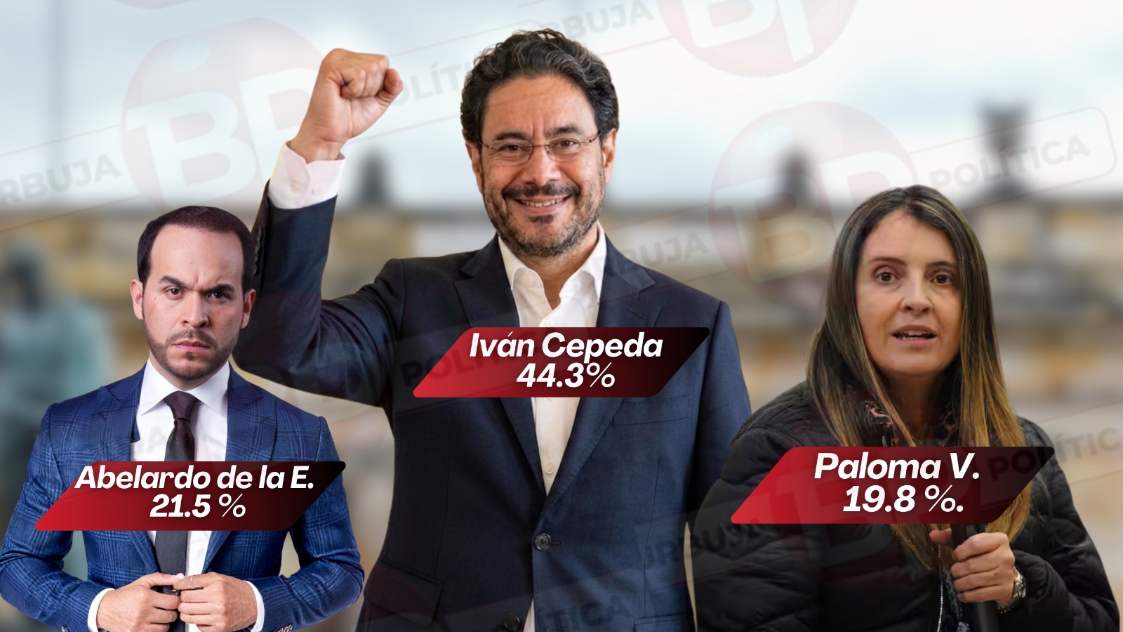 Abelardo de la Espriella suma un 21.5 % sube casi 3 puntos y empieza a asegurar cupo en segunda vuelta, sacando a Paloma Valencia, que se estaciona en 19.8 %.