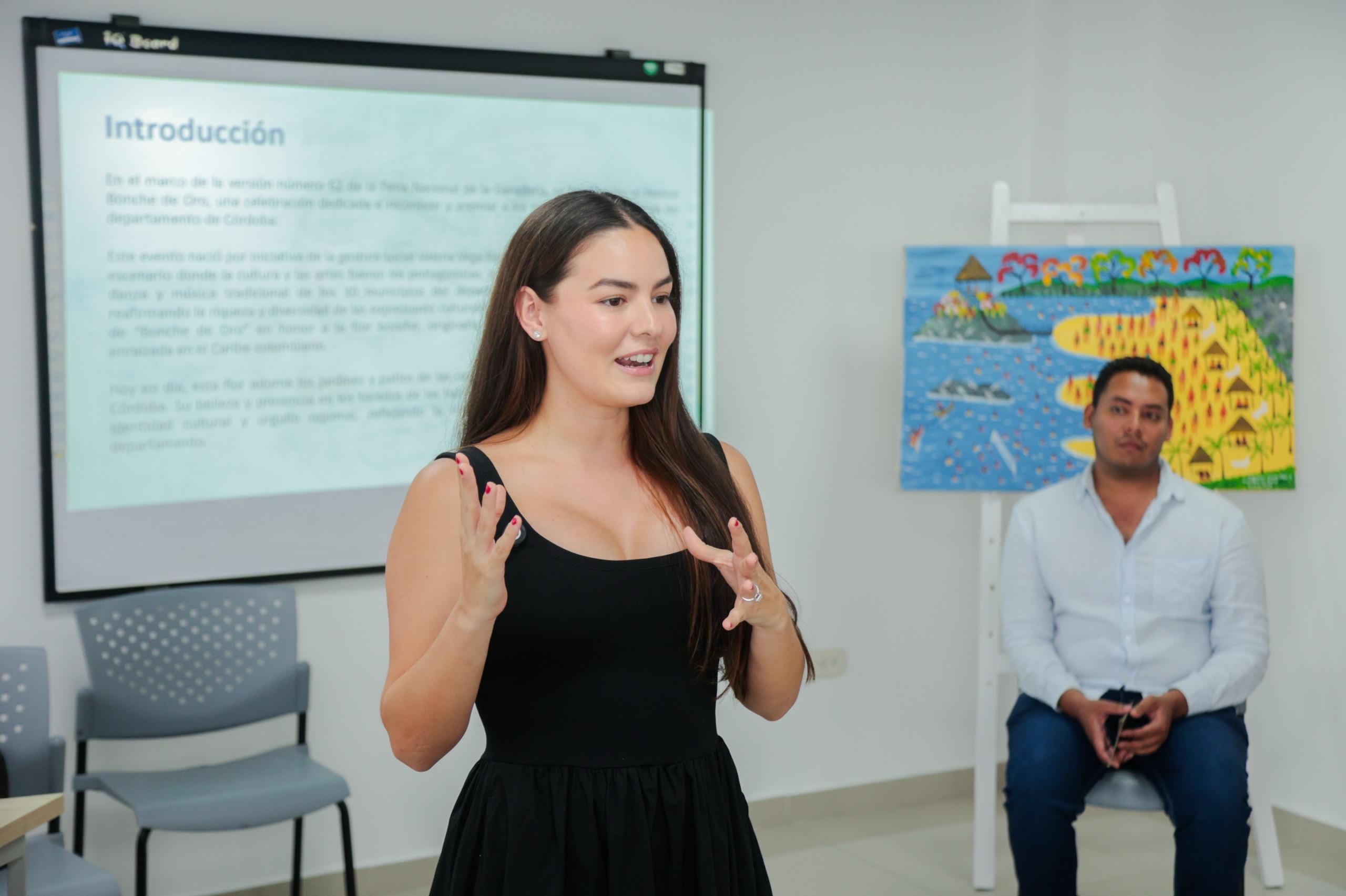 En compañía del secretario de Cultura Departamental, William Puche, la gestora Social, Valeria Vega, dio a conocer los nuevos lineamientos para la inscripción de los grupos que participarán en los premios Bonche de Oro 2025.