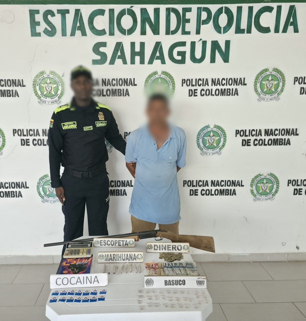 Mediante diligencias de registro y allanamiento llevadas a cabo en un bien inmueble ubicado el barrio Simón Bolívar, zona urbana del municipio de Sahagún, se hallaron varios gramos de sustancias alucinógenas listas para su distribución, entre ellas marihuana, cocaína y bazuco.