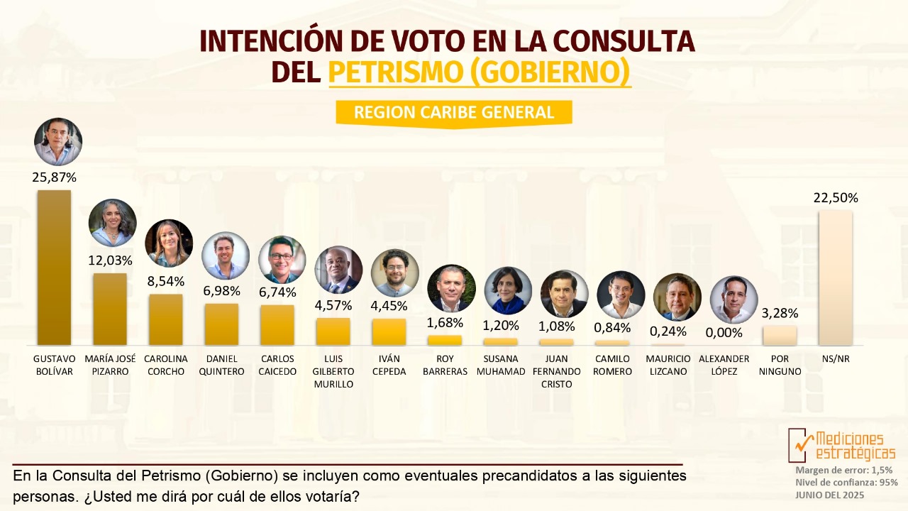 De acuerdo con los resultados el exsenador y exdirector de Prosperidad Social Gustavo Bolívar lidera de lejos las preferencias electorales de ese sector en el Caribe con un 25,87%