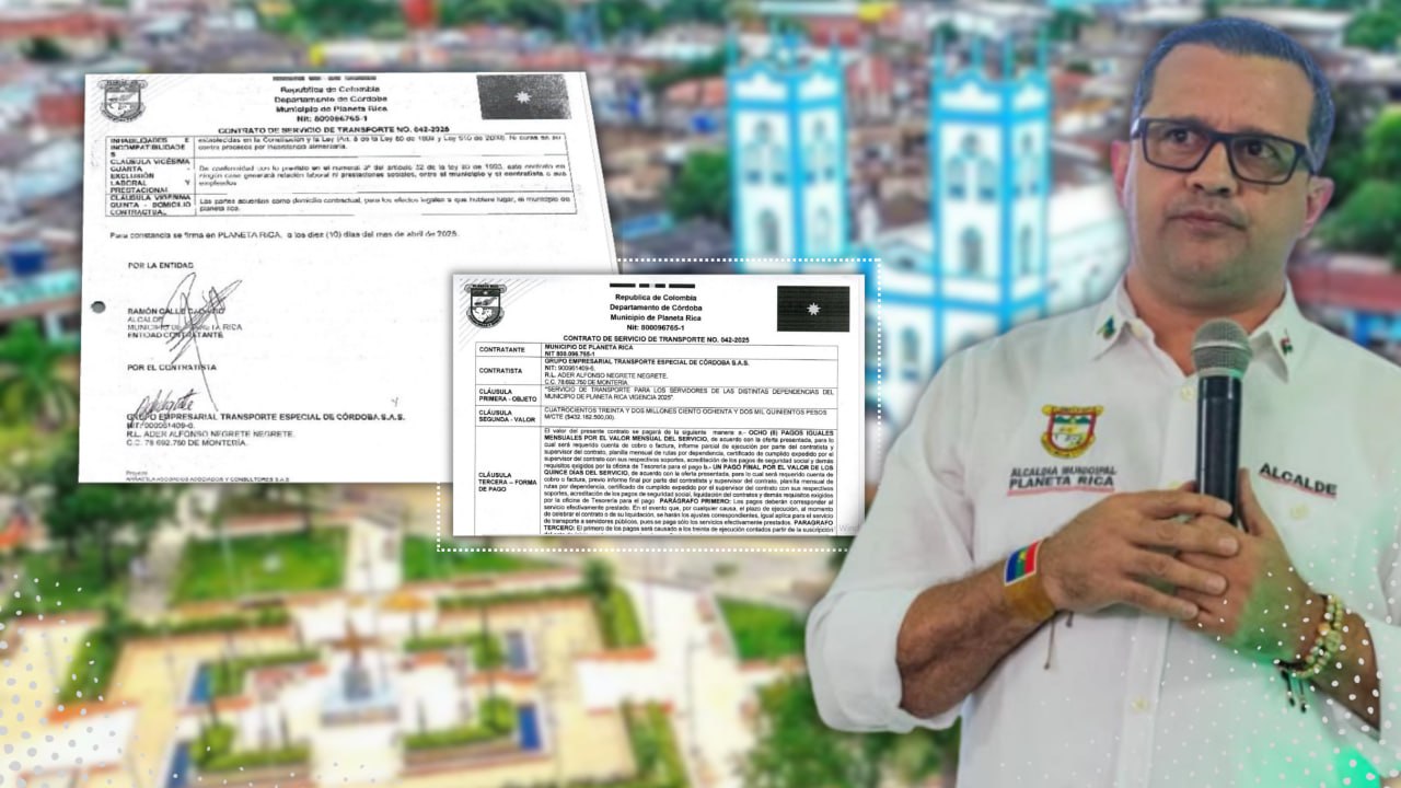 En Planeta Rica hay molestias con la Administración Municipal por un contrato celebrado entre el municipio y el Grupo Empresarial Transporte Especial de Córdoba, por valor de $432 millones 182 mil 500 pesos, con el propósito de «Servicio de Transporte para los servidores de las diferentes dependencias de la Alcaldía»