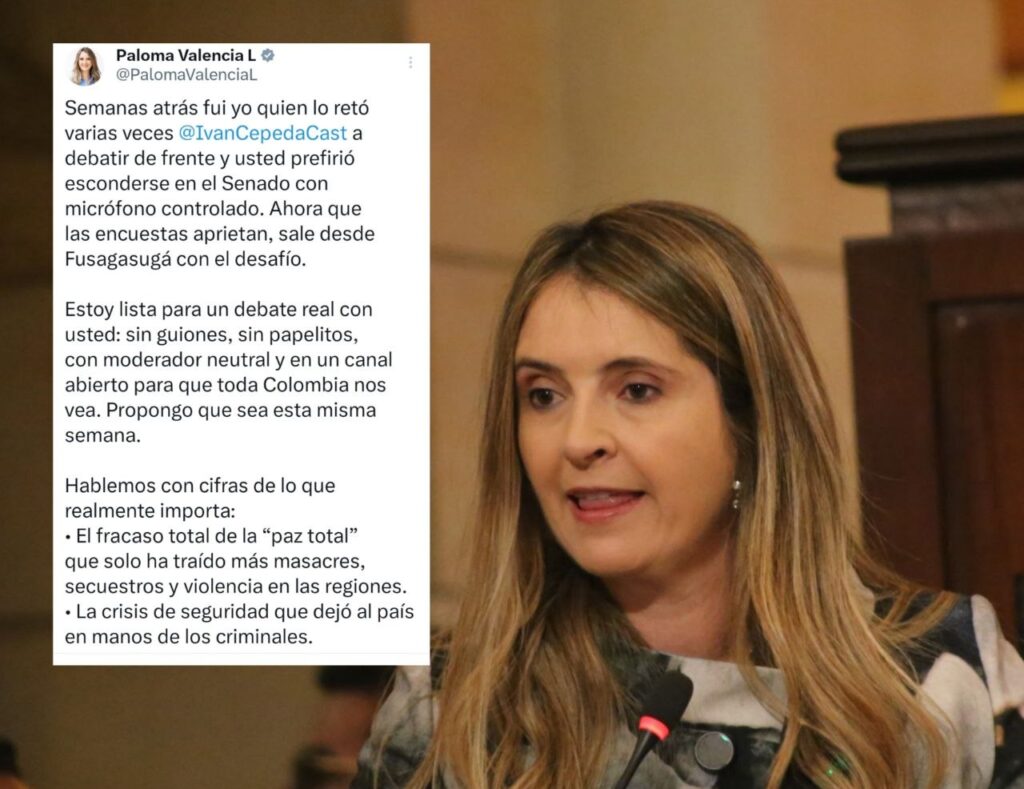 La senadora y precandidata presidencial por el Centro Democrático, Paloma Valencia, respondió con un contundente desafío al mensaje que el senador Iván Cepeda lanzó este sábado aceptando un debate cara a cara pero bajo sus propias condiciones.