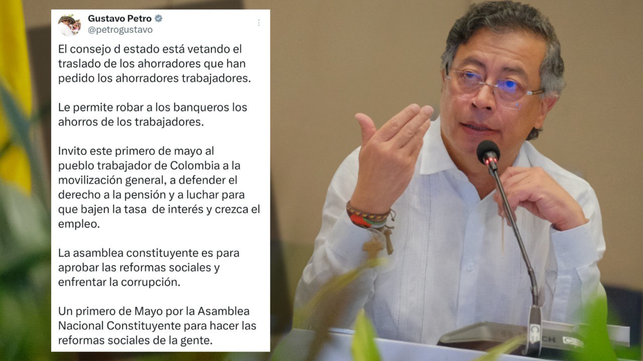 En su mensaje, el presidente Petro dijo que esa decisión judicial “les permite robar a los banqueros los ahorros de los trabajadores», por ello llamó a la movilización nacional el próximo 1º de mayo y en apoyo a la asamblea constituyente “para aprobar las reformas sociales y enfrentar la corrupción».