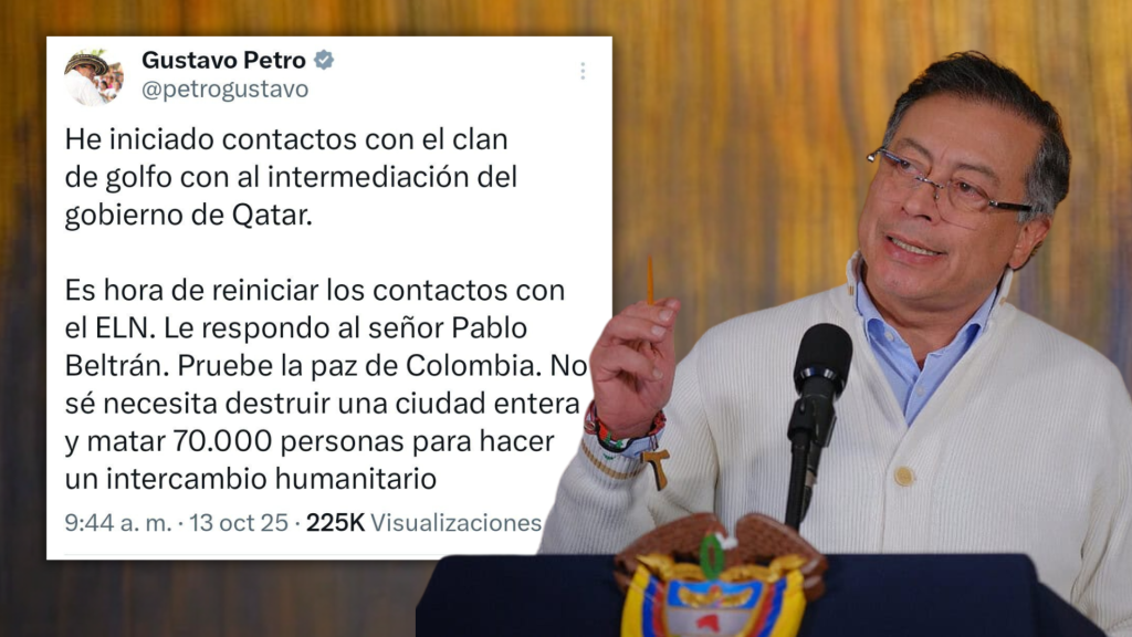 El presidente Gustavo Petro anunció el lunes 13 de octubre la reactivación de los contactos de paz con el Ejército de Liberación Nacional (ELN) y confirmó que el gobierno de Catar está mediando en los acercamientos con el Clan del Golfo .