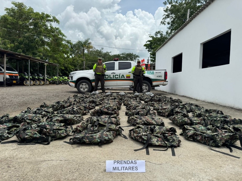 El procedimiento se realizó sobre uno de los corredores viales de la ciudad, donde fue requerido para inspección un vehículo conducido por un ciudadano de 47 años. Durante la verificación del contenido de la carga, se hallaron 60 morrales de campaña y 10 uniformes de fatiga, elementos catalogados como material de intendencia de uso exclusivo del Ejército Nacional.