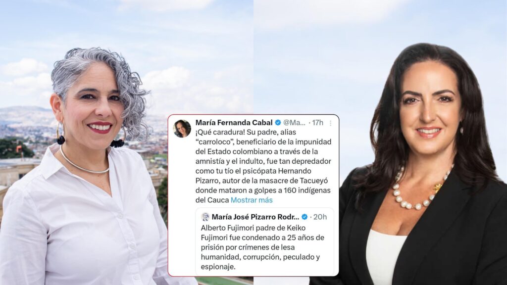 Ante la mención de las condenas de Fujimori, María Fernanda Cabal lanzó una respuesta cargada de ataques hacia el origen familiar de Pizarro. La senadora del Centro Democrático arremetió contra la figura de Carlos Pizarro León-Gómez y su hermano Hernando Pizarro, vinculándolos con la masacre de Tacueyó y la toma del Palacio de Justicia.