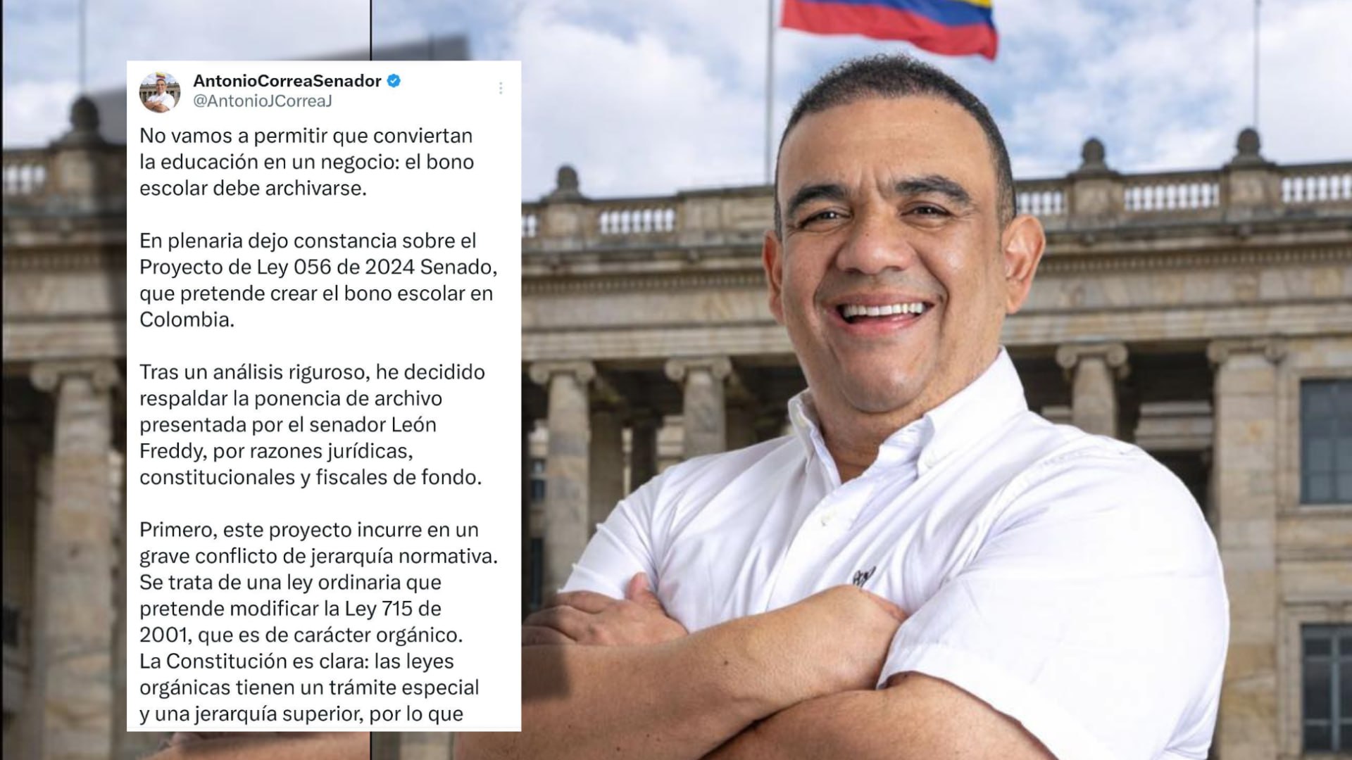 Una fuerte estocada recibió el Proyecto de Ley 056 de 2024, que busca implementar el bono escolar en Colombia. El senador Antonio Correa anunció su respaldo total a la ponencia de archivo de la iniciativa, lanzando una dura advertencia sobre los riesgos jurídicos, fiscales y éticos que representaría convertir la educación en lo que denominó «un negocio de la politiquería».