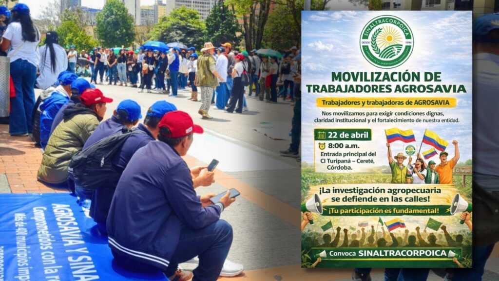 Los trabajadores y trabajadoras de la Corporación Colombiana de Investigación Agropecuaria (Agrosavia), agrupados en el sindicato Sinaltracorpoica, llevarán a cabo una jornada de protesta el próximo miércoles 22 de abril de 2026. La movilización, que se desarrollará entre las 8:00 a. m. y las 11:00 a. m., tendrá como epicentros las entradas principales del Centro de Investigación Turipaná, ubicado en Cereté, Córdoba, y su sede en El Carmen de Bolívar. Esta acción surge como respuesta a la creciente incertidumbre sobre la sostenibilidad financiera de la entidad y la preservación de los bancos de germoplasma, fundamentales para la biodiversidad del país.